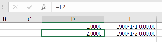 Excel:起始时间为1900-01-01 00:00:00,对应浮点时间为1.0000