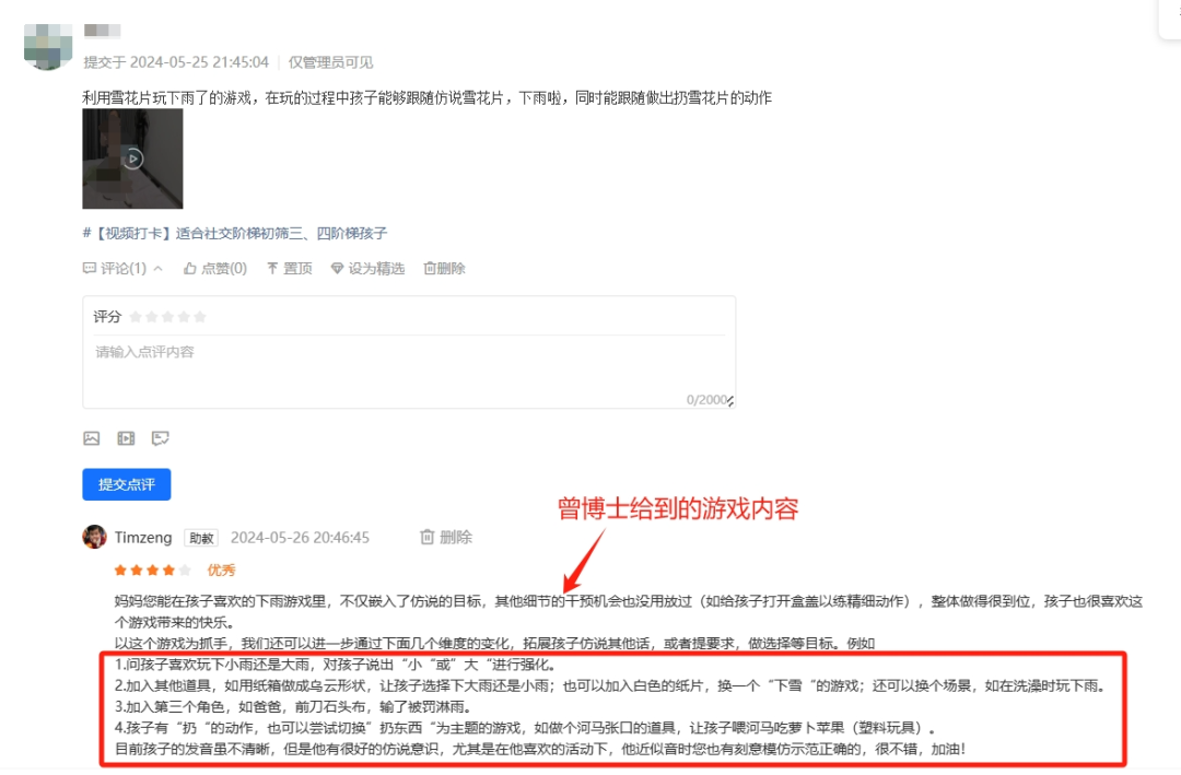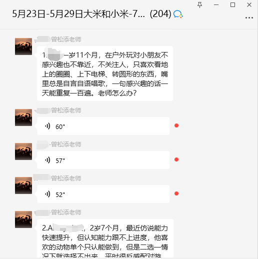 5月开始,大米和小米每月都上线1期线上训练营,围绕自闭症/发育迟缓、多动等孩子的社交、语言、情绪等方面,给家长全程带教、全程陪练的实操指导服务。已获得许多家长的好评——