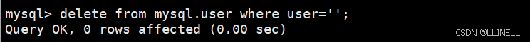 5.删除匿名用户(默认会存在匿名用户登录(user为空的用户))