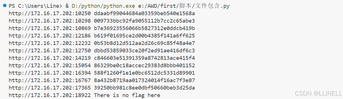 (命令执行漏洞与文件包含得到的是同一个flag,但是鉴于各人漏洞修复情况,可以分别写两个脚本试试)