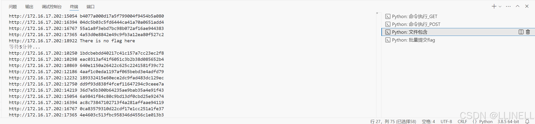 每隔5分钟自动刷新脚本批量攻击,并将flag保存在flag1 2 3 .txt目录下: