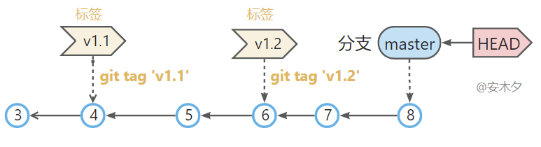 标签(Tags)指的是某个分支某个特定时间点的状态,是对某一个提交记录的的固定“指针”引用。一经创建,不可移动,存储在工作区根目录下.git efs ags。可以理解为某一次提交(编号)的别名,常用来标记版本。所以发布时,一般都会打一个版本标签,作为该版本的快照,指向对应提交commit。