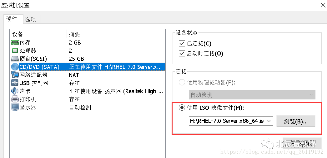首先在虚拟机的这个配置中,勾选使用iso映射文件,然后选中我们iso文件所在的位置即可。
