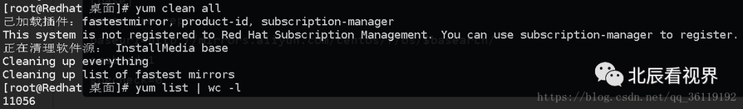 配置完保存退出,清除yum缓存,查看yum中的包有多少,这里可以看到有11056个,比本地yum源的四千多个多了不少!