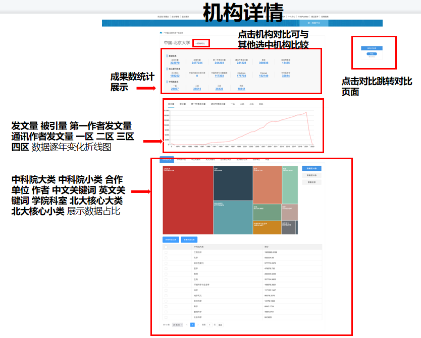机构库是用来保存机构所属学者研定成果的数据库,包括存档,管理,发布,检索和开放共享。可以对一个单位或多个单位进行分析和对比,此分析包括基本的各项聚类,还包括研究热点、研究漂移等。