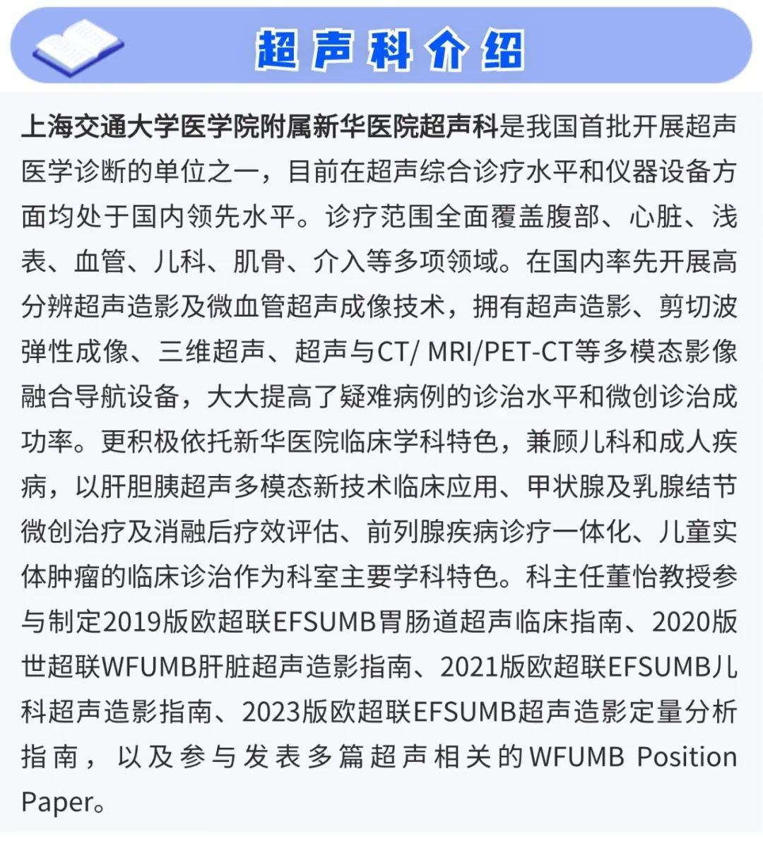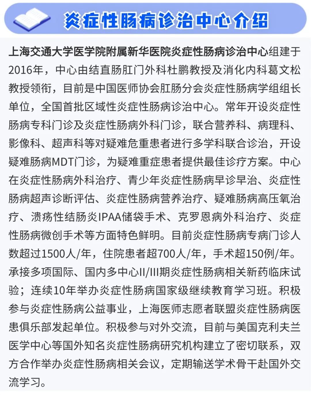 新华医院超声科依托新华医院炎症性肠病诊治中心平台,应用多模态肠道超声诊疗新技术诊断IBD及实时评估其疗效,具有丰富的IBD相关超声诊疗经验。包括成人及儿童IBD患者的多模态超声诊断及疗效随访。精准无创评估炎症程度、狭窄范围、并发症等。