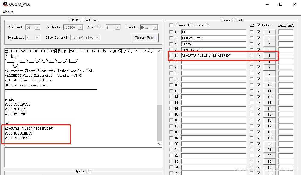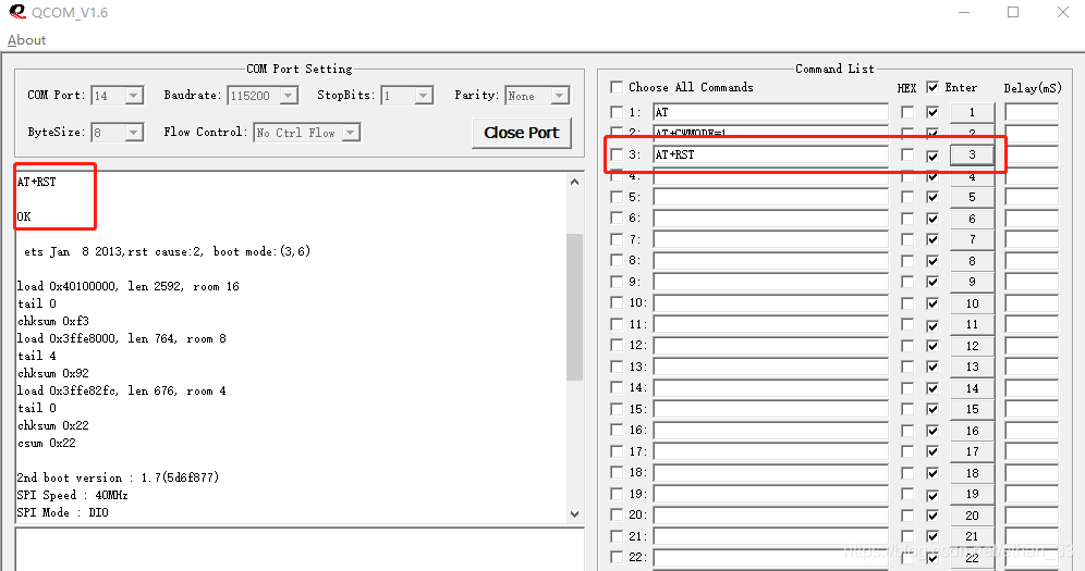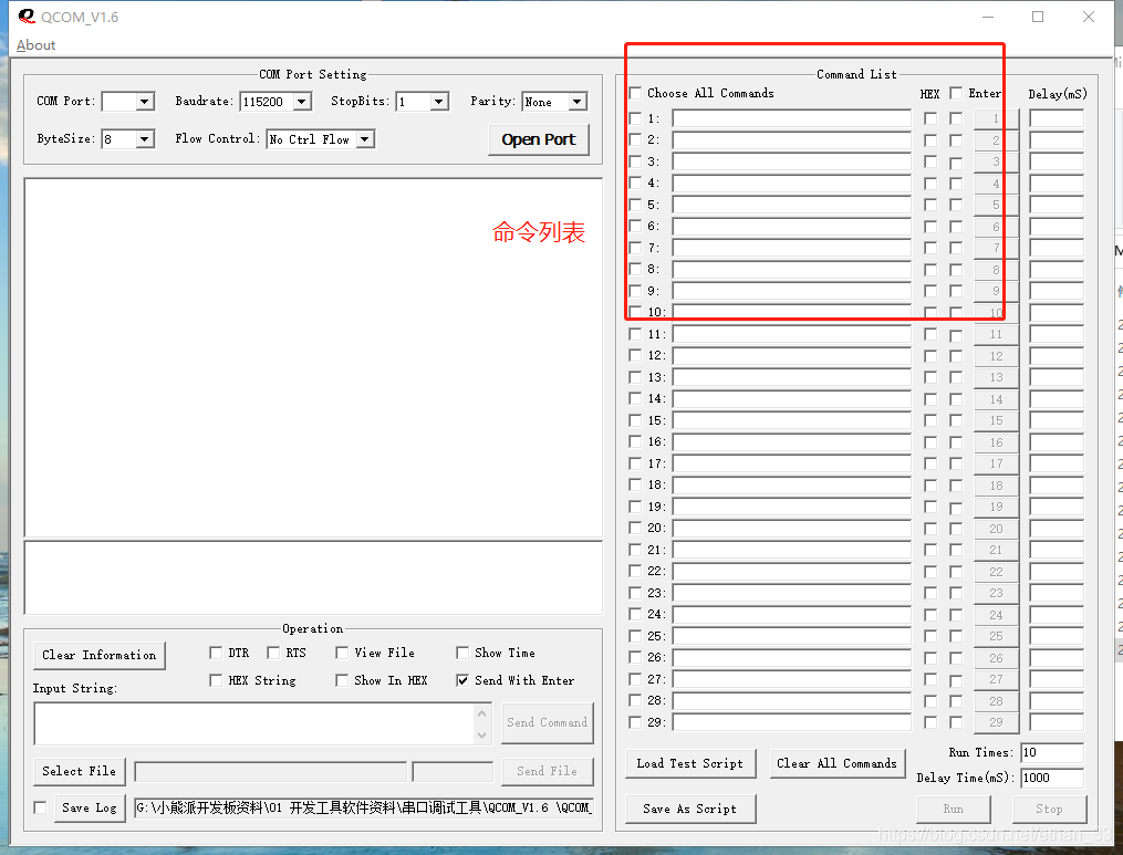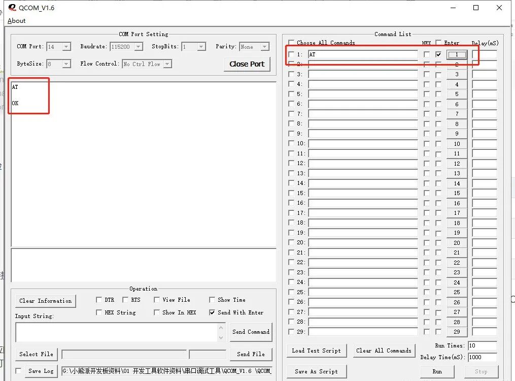 本章节软件部分仅需要串口调试助手,我使用的是”QCOM”,因为他有一个可以保存指令的功能;