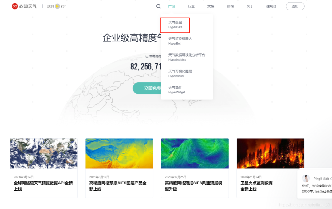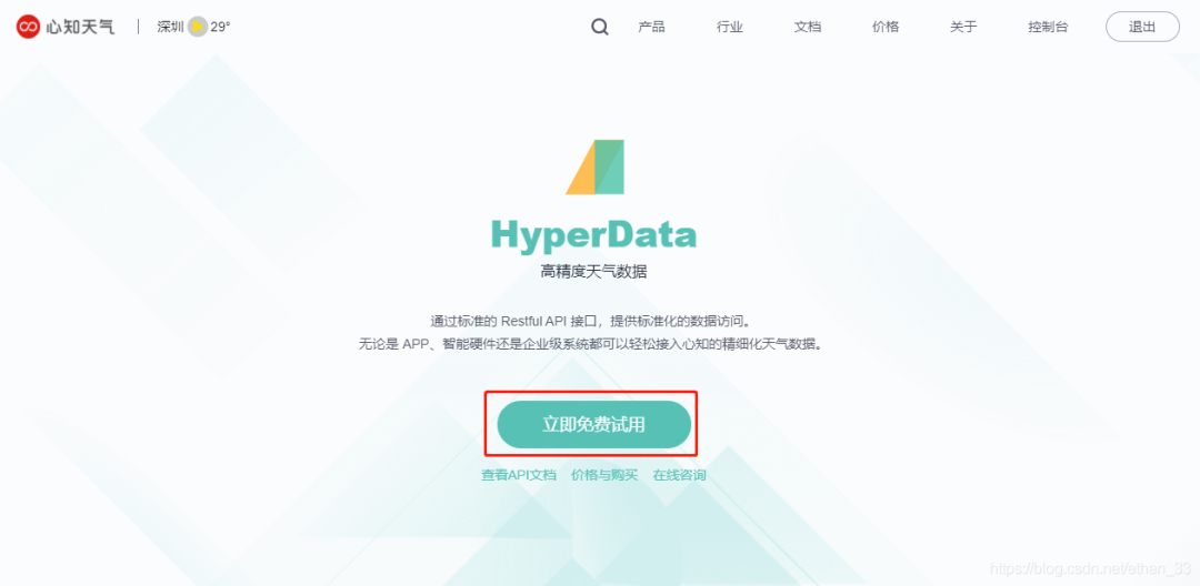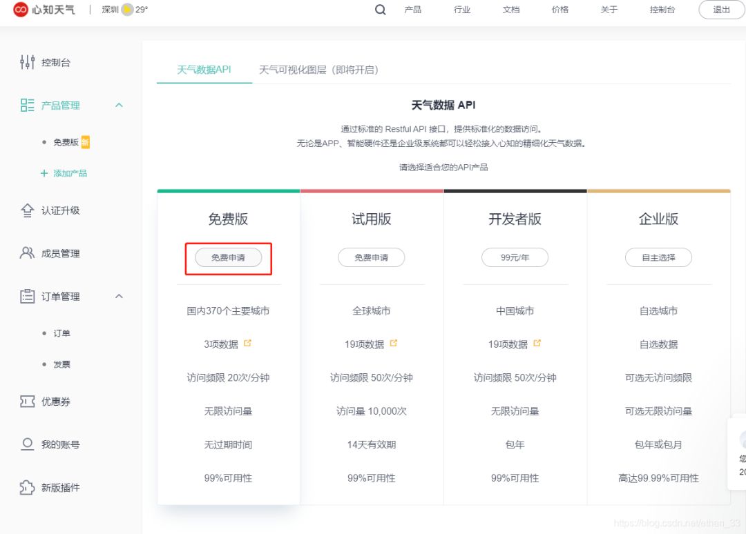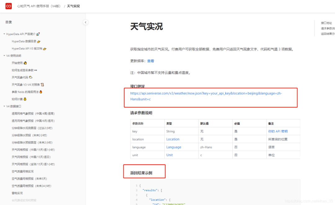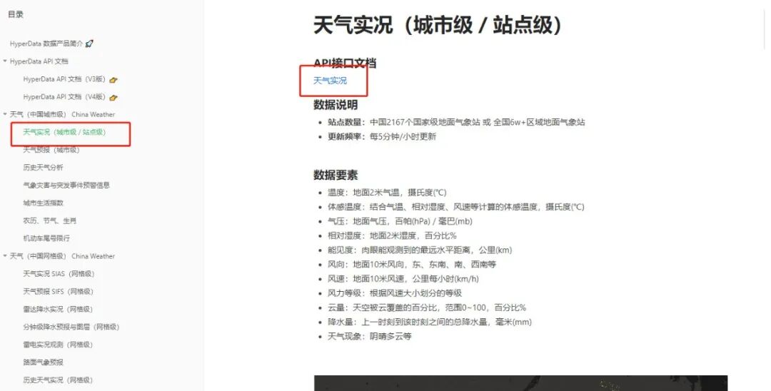 重新点击“产品”—>“天气数据”,点击“查看API文档”。