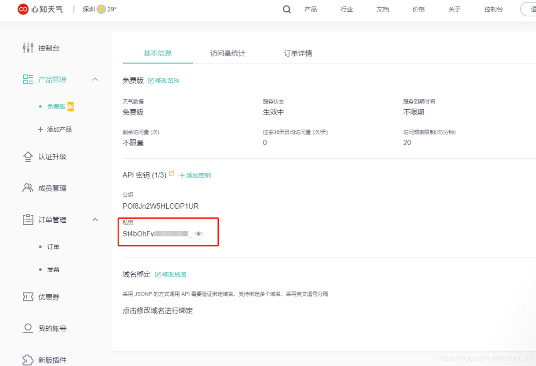 申请后可查看到自己的私钥(自行保存后面需要用到)。