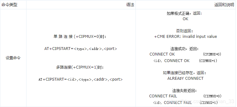 发送指令AT+CIPMUX=0 设置模块为单路连接模式。