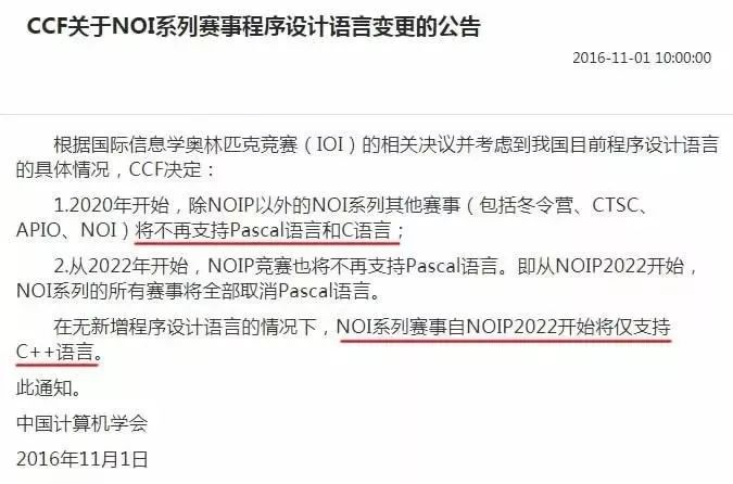 NOIP目前支持的语言有PASCAL/C/C++,从2020年开始NOIP不再支持PASCAL语言;
