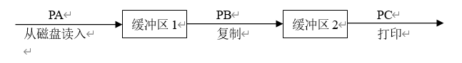 8.有三个进程PA、PB、PC合作解决文件打印问题:PA将文件记录从磁盘读入主存的缓冲区1,每执行一次读一个记录;PB将缓冲区1的内容复制到缓冲区2,每执行一次复制一个记录;PC将缓冲区2的内容打 印出来,每执行一次打印一个记录。缓冲区的大小等于一个记录的大小。请用P、V操作协调三个进程的工作。