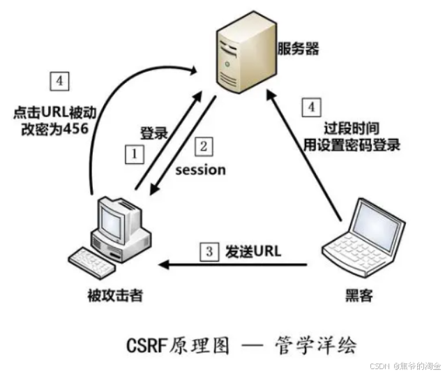 但仔细想想,在一个域名归属下的页面,可以访问其他域名归属的东西,本身是存在安全隐患的,上面就是典型的例子,被称为跨站请求伪造(CSRF)攻击