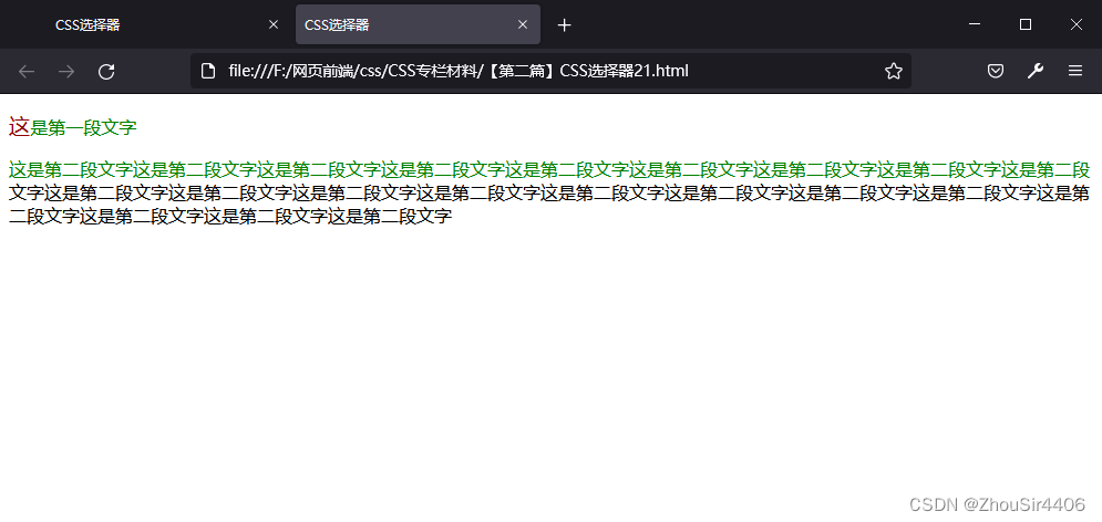 ::first-letter用于指定匹配元素的第一个文本字符的样式。