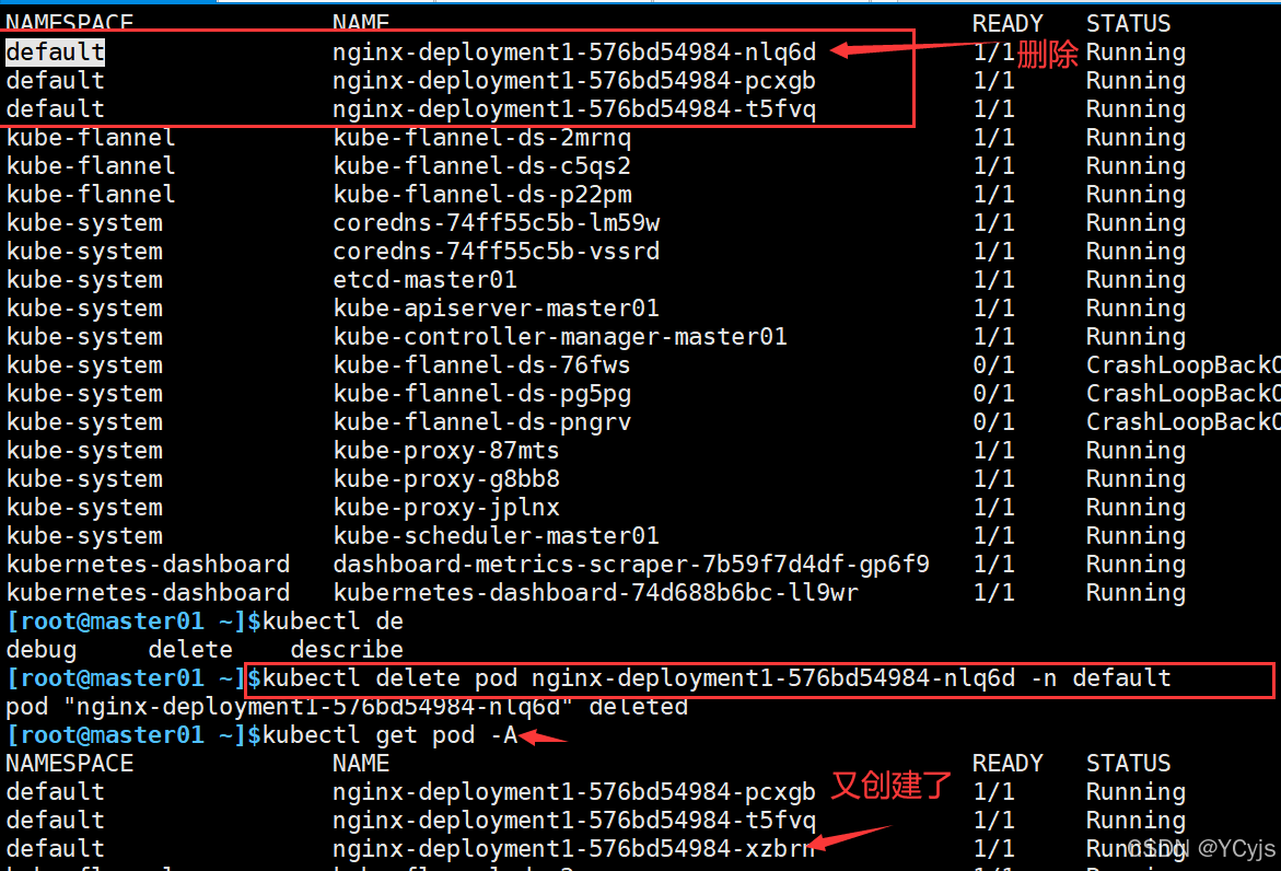 但是由于存在deployment/rc之类的副本控制器,删除pod也会重新拉起来