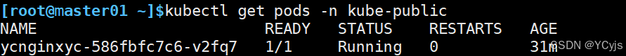 在命名空间kube-public 创建副本控制器(deployment)来启动Pod(ycnginxyc)