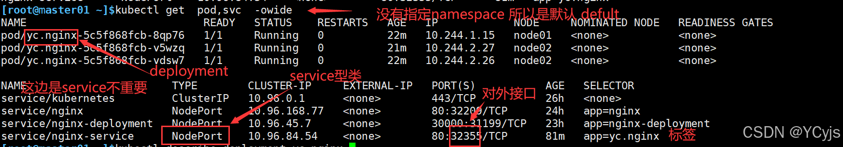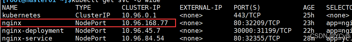 NodePortkubectl expose deployment yc.nginx –port=80 –target-port=80 –name=nginx-service –type=NodePort