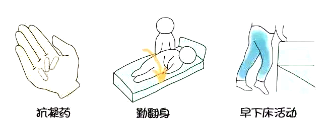 早发现早治疗,根据血栓的形成时间,选择合适的药物治疗、物理治疗、手术术式、护理方法等,防止新鲜血栓的形成,利于血栓溶解、机化,促进管腔再通,降低肺栓塞的发生率。