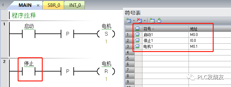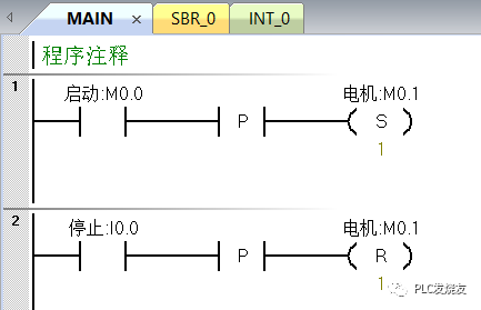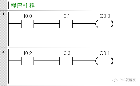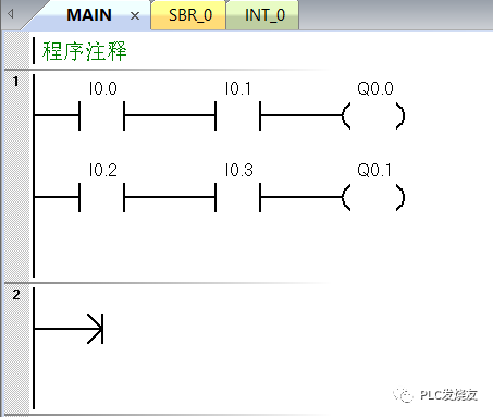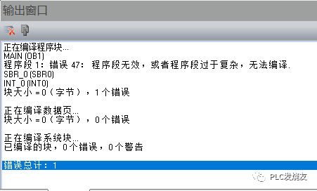 如下图所示,MAIN程序中的程序段1里编写了两段程序,编译的时候会提示程序段无效或者程序段过于复杂,无法编译。很多初学者看到书上的内容是没有标出程序段的编号的,以为是连在一起的,或者是学习过三菱PLC来学习西门子PLC都会常犯的一个错误。