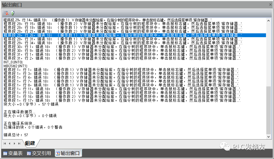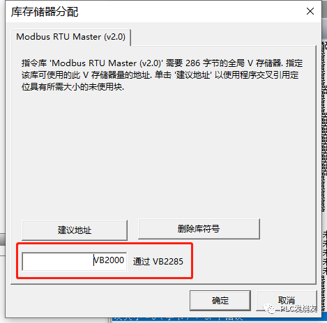 当调用一些库时,有一些库需要进行对库进行地址分配,这里以Modbus RTU库指令为例。如果没有对调用的库进行库地址分配,软件编译的时候会报错,如下图所示。解决方法:在程序块里面对调用的库进行地址进行分配,在库存储区分配界面输入分配开始的地址,会自动计算占用的地址。如图中的vb2000-vb2285已经被分配,故不能做其他用途,也可以点击建议地址进行系统自动分配。