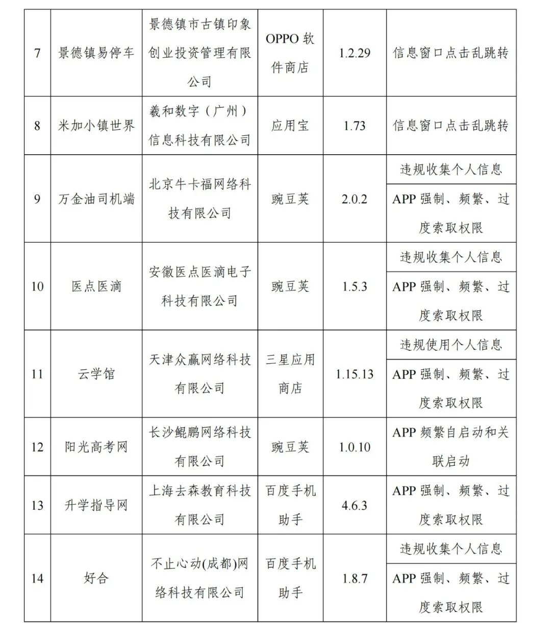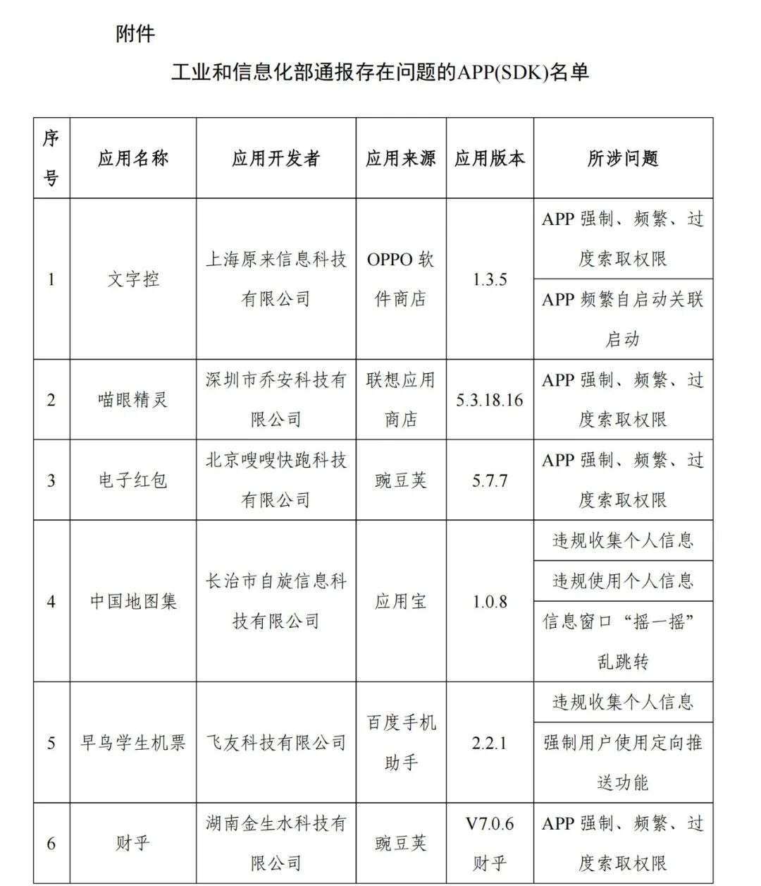 附件:工业和信息化部通报存在问题的APP(SDK)名单