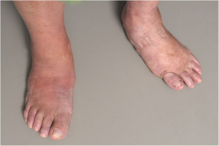 足部的红肿消退;X片和CT检查显示骨重塑、骨质硬化 |