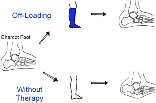 全接触石膏免负重使患者渡过疾病活动期,直到 Charcot足的活动体征显着减少或消失