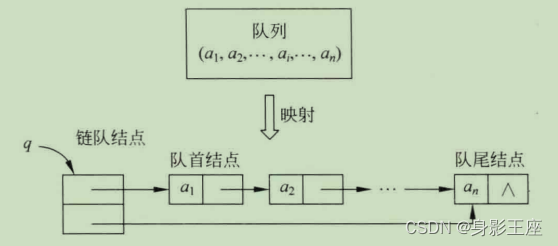 链式存储结构采用链表来实现,不过采用的是队列先进先出的特点来管理节点。