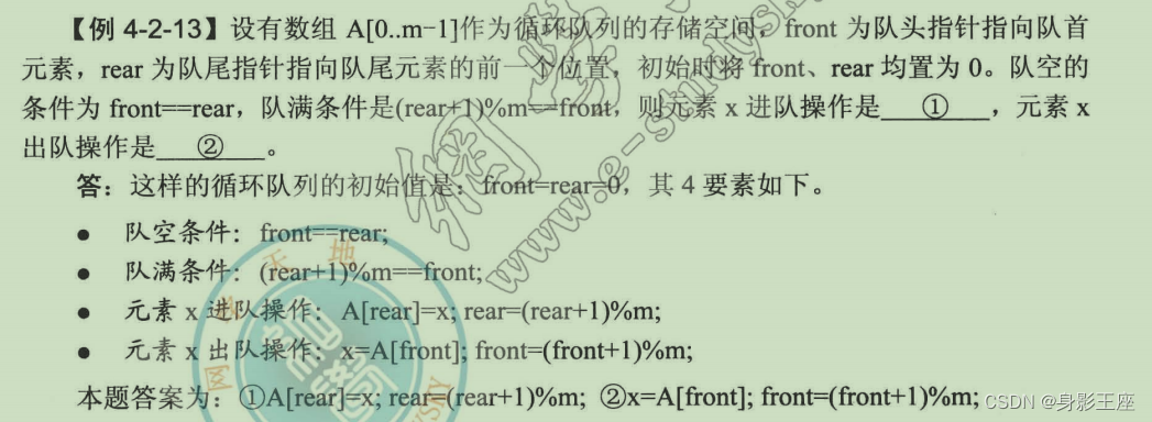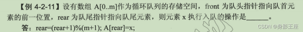 - 元素x进队(需要移动队尾指针):q->rear = (q->rear + 1) % MaxSize;q->data[q->rear] = x;