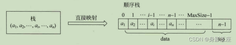- 栈满的条件: s-> top= = MaxSize- l(data数组的最大下标)。
