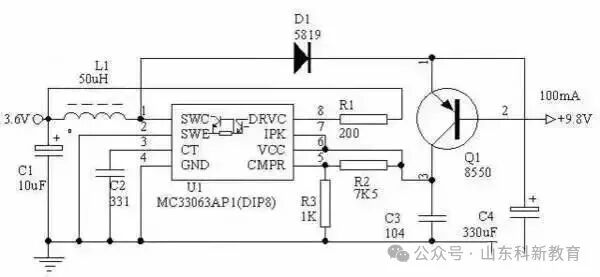 当有负载时(Q1有Ieb电流)8550的EC极导通,IC得电工作。IC是否工作是由是否有负载决定的,就相当一个电池。用IC做电压转换效率高,输出稳定!