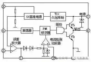 ③脚为电流传感端,通常在功率管的源极或发射极串入一小阻值取样电阻,将流过开关管的电流转为电压,并将此电压引入境脚。当负载短路或其它原因引起功率管电流增加,并使取样电阻上的电压超过1V时;⑥脚就停止脉冲输出,这样就可以有效的保护功率管不受损坏。