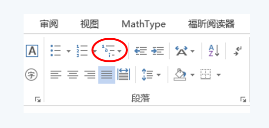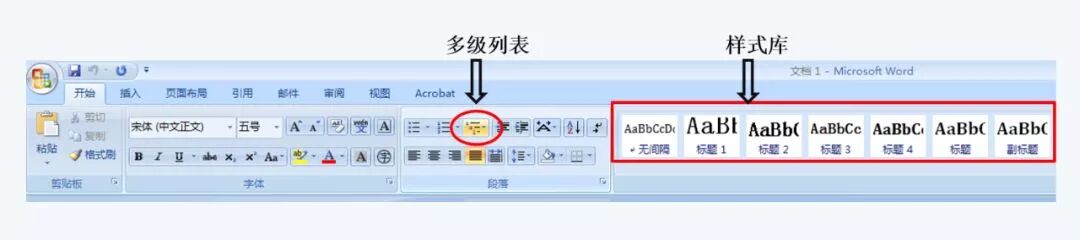 图2 多级列表(红圈)与样式库(红框)