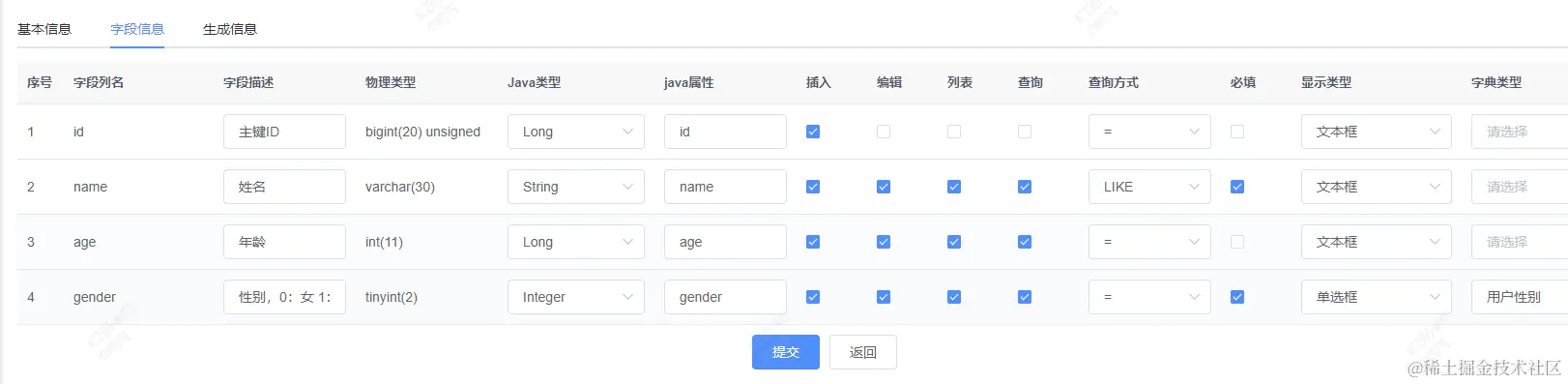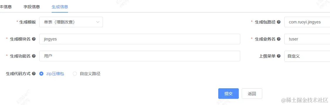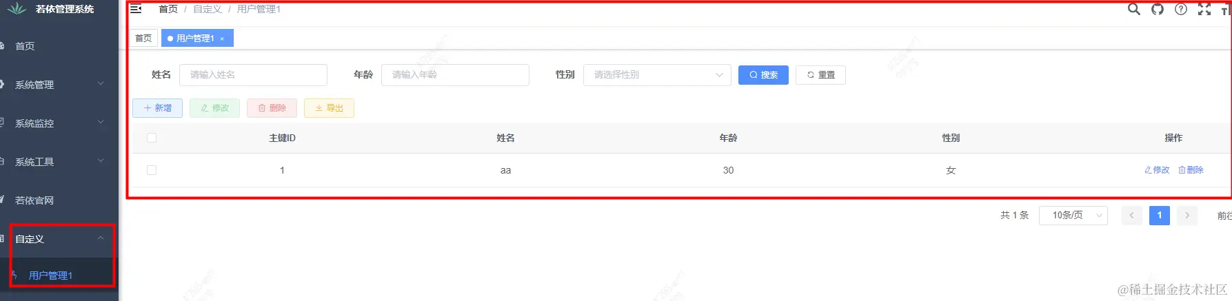 若依官网文档地址:doc.ruoyi.vip/ruoyi/docum… 本教程主要内容,自定义数据库表,使用若依开源系统生成代码并配置权限。
