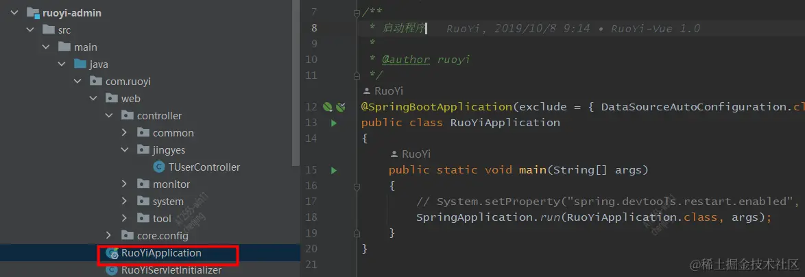 - 启动SpringBoot服务端,管理后台所在路径是ruoyi-admin,默认端口是8080。