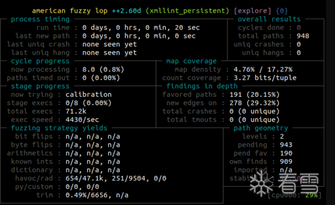 AFL++ 的统计输出中提到了路径(paths)和边(edges),并且隐含提到了“计数器”(counters)。我不是百分之百确定,但我相信他们对“路径”的定义与我们上面提到的定义是一致的。我认为他们在文档中表示“路径”与测试用例(testcase)相同。