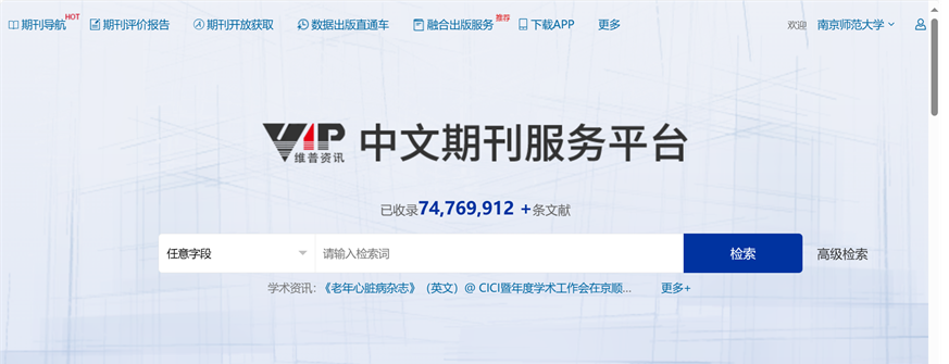 3、维普资讯中文期刊服务平台