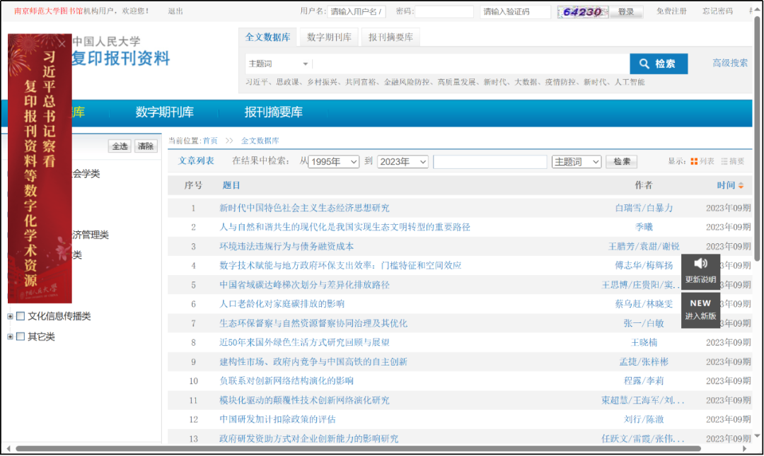 1、人大复印资料数据库—复印报刊资料全文数据库