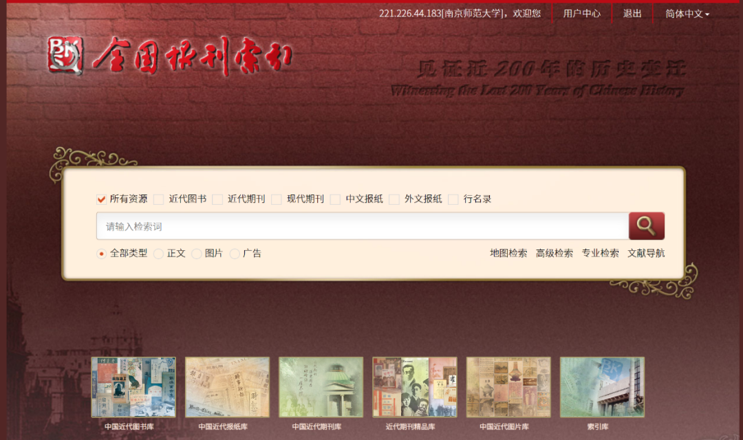 访问方式:图书馆主页—数字资源导航—校内访问—全国报刊索引
