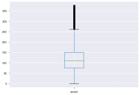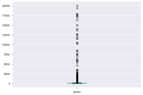 # power属性是有异常点的num_data.boxplot([‘power’])