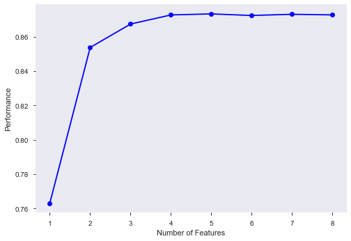 讯享网# 画出边际效应from mlxtend.plotting import plot_sequential_feature_selection as plot_sfsfig1 = plot_sfs(sfs.get_metric_dict(), kind=‘std_dev’)plt.grid()plt.show()