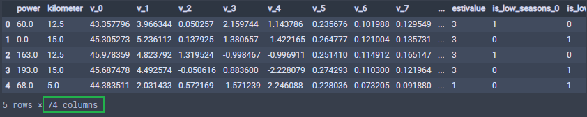 讯享网final_data = pd.concat([num_data, cat_data, time_data], axis=1)final_data.shape # (, 74)final_data.head()