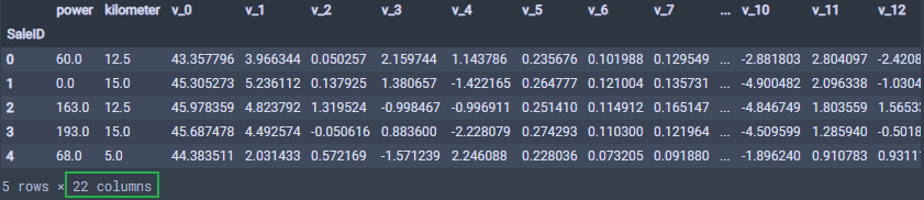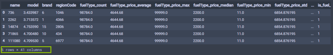 这样,一个特征构造完毕, used_time字段,表示汽车的使用时间。全部构造完毕之后,我们再看一下结果。