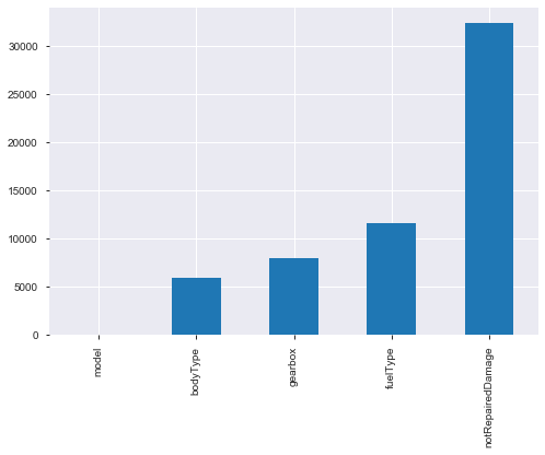 上图可以看到缺失情况, 都是类别特征的缺失,notRepaired这个特征的缺失比较严重, 可以尝试填充, 但目前关于类别缺失,感觉上面的方式都不太好,所以这个也是一个比较困难的地方,感觉用模型预测填充比较不错。但目前不做进一步处理,因为后面的树模型可以自行处理缺失。当然OneHot的时候,会把空值处理成全0的一种表示,类似于一种新类型了。
