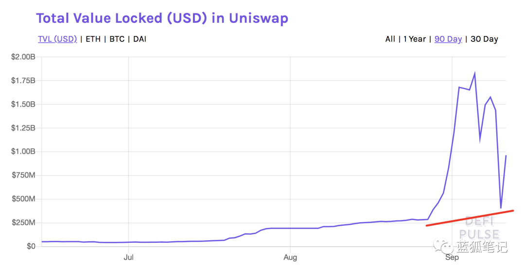 (从SushiSwap诞生前后的Uniswap流动性看,它只是取回属于自己的流动性)