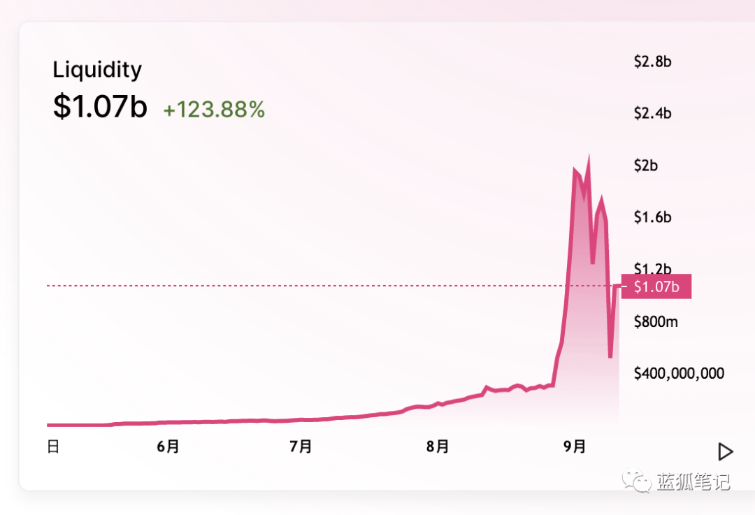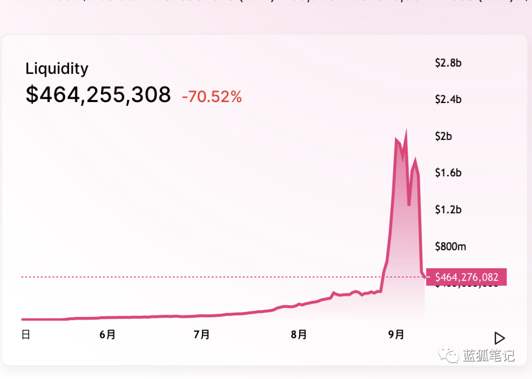 蓝狐笔记发现,SushiSwap的流动性依然保持跟原来相差不大的水平(轻微下跌)。那么,5亿美元左右的新增流动性从哪里来?原来是SashimiSwap(生鱼片)来了。