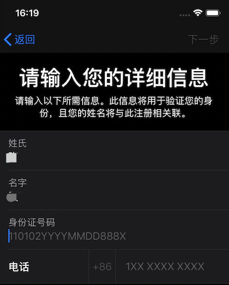 1、输入您的名字、姓氏、身份证号和电话号码。请勿输入别名、昵称或公司名称作为您的姓氏或名字,错误地输入您的法定姓名将导致注册审核延误。