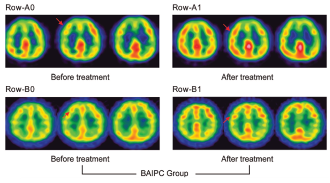 1、缺血预适应治疗前后对比:红色血流最多达到80%,黄色、绿色血流依次降低。药物+产品治疗完后,它就使毛细血管新生,侧支循环代偿增多,它对脑组织的血供量就增多。