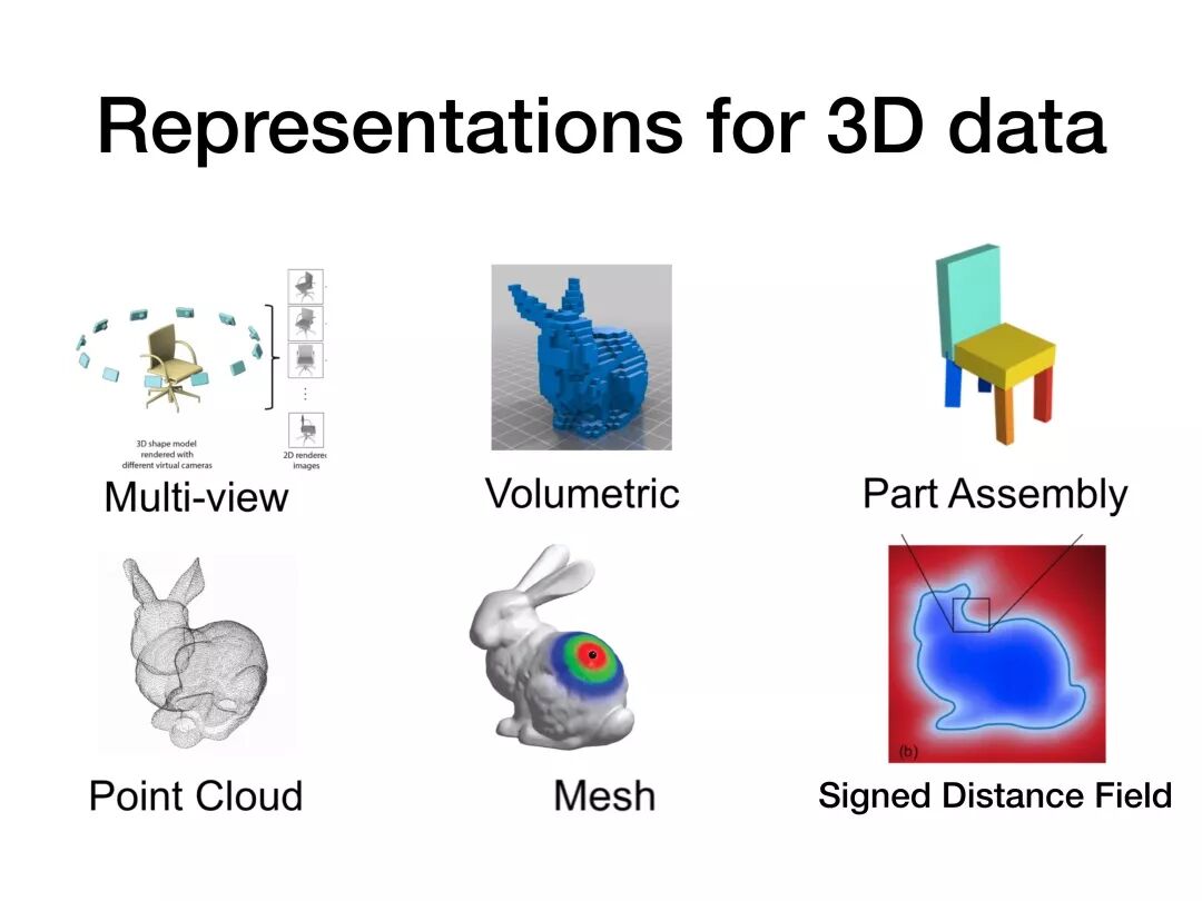 三维几何建模(3D geometry modeling)是计算机图形学的重要组成部分。近年来,随着深度学习在处理 2D 图像上的成功,研究者们开始尝试通过学习的方法表征三维几何。不同于 RGB 图片,三维数据表示并不唯一,常见包括体素、点云、mesh 等等,且多数表达方式的数据结构是不规则的。这就对深度神经网络在三维几何上的应用提出了挑战,近几年不少具有代表性和启发性的工作均针对这一挑战提出了自己的解决方案。