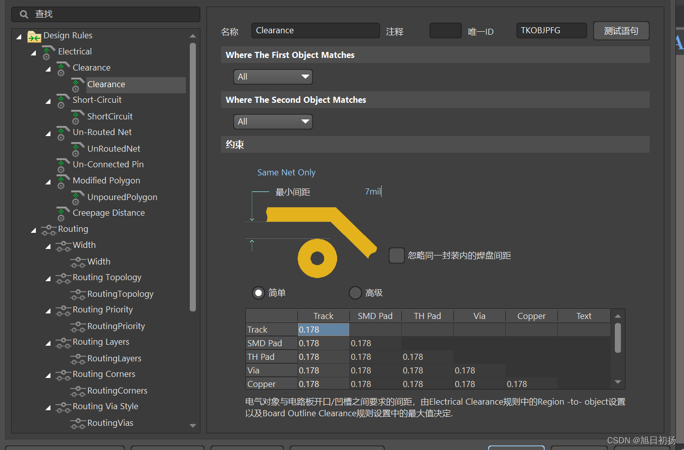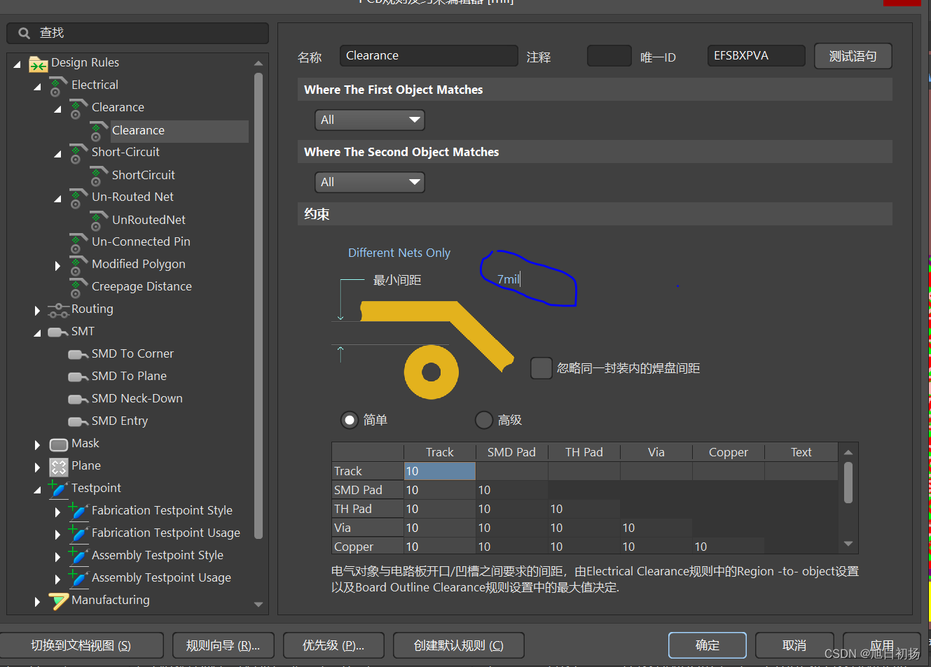 点开 设计 -》规则-》电器规则 修改最小间距值 可消除警告